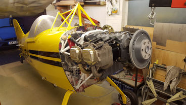 The engine is a zero timed lycoming O-360 A4M (solid crank) which was built at Swift Air. It is fitted with all new slick magnetos, airflow performance FM-150 fuel injection, sky-dynamics crossover exhaust, Christen oil system, B&C spin on oil filter, light weight B&C alternator and Skytec starter. Engine instrumentation is via an MGL extreme EMS. A new Hercules propeller is fitted as developed by Lauren Richardson and Rupert Wasey.